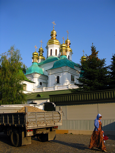 Легка і витончена дзвіниця дуже гарно вимальовується на високих живописних схилах Дніпра.