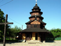 центральним зрубом також підкреслює горизонтальний характер композиції. Дзвіниця, збудована у XVIII ст., є найпоширенішим на Гуцульщині різновидом дерев'яної дзвіниці типу "четверик на четверику". Перший ярус - зрубний четверик, 2-й - відкрита аркада-галерея, увінчана невисоким наметовим дахом.Як і церква, дзвіниця вирізняється підкреслено горизонтальними пропорціями, чому сприяє влаштування навколо неї розлогого піддашшя на фігурних кронштейнах. Пам'ятка є одним з найдосконаліших ансамблів гуцульської народної архітектури.