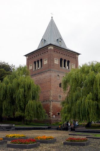 За місцевою традицією костел збудований на місці давнього замку руських князів. Будівництво розпочалось у 1392 р, закінчилося в 1-му десятиріччі XV ст. У кінці XV ст. костел горів, після чого був відновлений і 25 травня 1511 р. освячений. У 1548 р. його оточено валом, ровом і парканом, збудовано кілька дерев'яних башт і одну муровану. У 1648 р. будівлю поруйновано, а в 1681 р. - відбудовано. Ремонтувався костел у 1754 р. Ґрунтовну реставрацію проведено в останньому десятиріччі XVHI ст. У 1780 р. збудовано нові хори, а хори при північній частині пресбітерію розібрано. У 1788-1789 рр розібрали присінок південного входу. Фрескове малювання 1791-1795 pp. виконали Солецький і Борщ. У 1800 р на місці північних дверей побудовано каплицю, матеріалом для якої послужила цегла розібраного верхнього ярусу башти-дзвіниці. Реставраційно-оновлювальні роботи продовжувались наприкінці XIX - на початку XX ст. З 1902 до 1910 р. реставраційні роботи здійснювалися за проектом архітектора Ф. Єльонка. Тоді з пресбітерію зняли високий готичний аттик і накрили його існуючим донині пониженим дахом.Костел мурований з червоної цегли, не тинькований (мурування хрещате), тринавовий, зального типу, з видовженим гранчастим пресбітерієм. За планом дуже наближається до кафедрального костелу у Львові без пізніших прибудов. З північного боку нави прилягає квадратна в плані каплиця, до пресбітерію - двоповерхова закристія. Стіни укріплені контрфорсами, головний фасад декорований ромбоподібним орнаментом з добре випаленої та полив'яної цегли. У східну стіну фасаду вмонтовано фрагменти білокам'яної скульптури поганських часів, фриз пресбітерію оздоблено полив'яними плитками. Західний і східний фасади увінчують зубчасті фронтони, гребінь даху завершує готична сигнатурка. В інтер'єрі - чотири стовпи, які несуть систему півциркульних і хрещатих склепінь та ділять основний об'єм на три нави. Над бічними навами влашто-вано галереї, біля західної стіни - хори. Пресбітерій перекрито зірчастим нервюрним склепінням. Там же збереглися фрагменти стінопису XV ст., у навах -живопис кінця XVIII ст. Біля північного пілона стоїтьскульптурний надгробок Катерини Рамултової (скульптор - С. Чешек, 1572 p.).с. 142 Дзвіниця розміщена з південного боку костелу. Будівля мурована з цегли, не тинькована, триярусна, квадратна в плані, під наметовим дахом. Збудована в 1551р. архітектором І. Грендошем як оборонна башта. Третій ярус, що був розібраний наприкінці XVIII ст., відновлений у 1883 р До реставрації дзвіниця була завершена банею. Мурування - хрещате. У 1-му ярусі влаштовано наскрізний проїзд, стіни прорізані бійницями, вікнами та сліпими нішами.