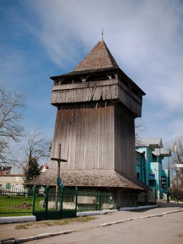 Церква стоїть у передмісті "Зварич" недалеко від старих солеварень. Збудована або перебудована, згідно з написом на сволоку нави, У 1613 р. У 1661 р. над бабинцем збудовано каплицю св. Іоана Хрестителя. У 1715 р. церква ґрунтовно оновлена, 1823 р. ремонтувалася.Церква - дерев'яна, тризрубна, двоверха. До більшого квадратного зрубу нави з заходу прилягає менший квадратний бабинець, зі сходу - п'ятистінний вівтарний зруб з невеличким приміщенням з півночі. Четверик центрального об'єму накритий чотирисхилим наметовим дахом, завершеним масивним восьмигранним двоярусним глухим ліхтарем під наметовим вінчанням. Бабинець накритий восьмигранним наметом на низькому восьмерику, вівтар - п'ятисхилим дахом. Бабинець з трьох боків оточений двоярусною галереєю. На його 2-му ярусі влаштована емпора з виходом на галерею. Емпора (каплиця) міститься не безпосередньо над бабинцем, а висунута вперед у західному напрямку і нависає на стовпах поза стінами бабинця. Центральний і вівтарний зруби оперезує піддашшя на випусках вінців. У силуеті пам'ятки домінує центральний об'єм. В інтер'єрі верхи розкриті за формою дахів. Там же зберігся настінний живопис: у вівтарній частині - 1-ї половини XVII ст., на східній стіні нави - 1736 р, на емпорі - 1672 р. Іконостас - чотириярусний, пірамідальний, різночасовий. Намісний ряд з празничками - 1-ї половини XVII ст., верхній з апостолами виконаний у 1780 р. (маляр -П. Метельський).Пам'ятка реставрувалась у 1970-1971 pp. (архітектори - І. Могитич, І. Старосольський). Тоді ж реставровано стінопис.Дзвіниця стоїть з північно-східного боку церкви. Це висока, дерев'яна, квадратна в плані, триярусна, каркасна будівля, накрита наметовим дахом. Зведено її в 2-й половині XVII ст. На 3-му ярусі під наметом влаштовано ажурну аркаду з підсябиттям, що уподібнює дзвіницю до оборонних башт. Стіни пошальовані дошками, на рівні 1-го ярусу дзвіницю оперезує піддашшя.Обидві споруди є визначними пам'ятками галицької архітектурної школи дерев'яного храмобудівництва.