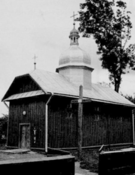 Найдавніші згадки про існування церкви в селі походять з 1579 р. Існуюча дерев’яна збудована у 1610 p., згідно з даними шематизмів (В. Кармазин-Каковський датує її 1745 p.). Це тризрубна одноверха будівля. Рівновисокі і рівноширокі її зруби вкриті спільним двосхилим дахом з невеликим восьмериком над навою, завершеним цибулястою банею з ліхтарем і маківкою.