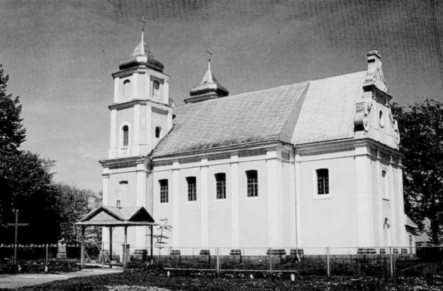 Є відомості про існування в селі монастиря. Найдавніші згадки про церкву походять з 1510 р. Теперішня мурована споруда зведена на місці давнішої дерев’яної у 1794 р. Вона костельного типу з елементами барокового стилю, увінчана на чільному фасаді двома фланкуючими триярусними вежами, вкритими банями. Відновлювалася у 1929 р. У другій світовій війні вигорів внутрішній вистрій. Не була зачиненою, тепер — УАПЦерква.