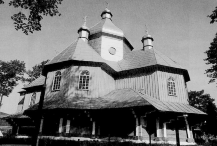 У 1507 р. в селі вже існувала парафіяльна церква. Попередня дерев’яна, збудована у 1671 р. була тризрубною триверхою. Над вівтарем і навою здіймалися тризаломні верхи, а над бабинцем — з одним заломом, в якому була влаштована дзвіниця. Будівля простояла до початку XX ст. У 1903 р. зведена існуюча дерев’яна, хрещата в плані церква за проектом архітекта Василя Нагірного. Великий світловий восьмерик її нави вкритий грушастою банею з ліхтарем і маківкою. Надзвичайно цікавою є дерев’яна дзвіниця, збудована перед 1779 р. За переказами, перенесена сюди з села Ісаї. Триярусна, у формі піраміди, кожен наступний ярус менший від попереднього. Зрубні перший (комора) і другий (кап-лиця, ймовірно, Покрови Пр. Богородиці, що згадується в тематизмі 1879 р.) яруси оточені арковими галереями. Третій арковий ярус стовпової конструкції вкритий низьким восьмибічним наметом на дуже низькому восьмерику. Дзвіниця відреставрована у 1970 р. (архіт. Ігор Старосольський, Іван Могитич).