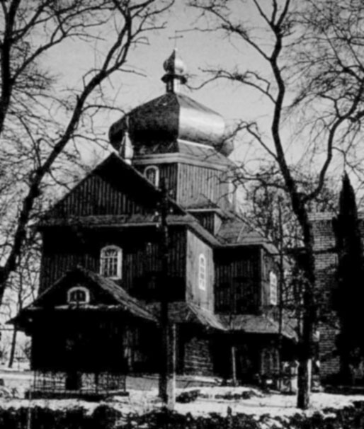 Ерекційну грамоту парафія отримала від Павла Тарла у 1613 p., підтверджену Яном Карлем Тарлом у 1624 р. Додатковий привілей надала у 1674 р. Барбара Любомирська, дочка Яна Тарла. Теперішня дерев’яна церква збудована, як подають шематизми 1903, 1934 та 1938 pp., у 1647 р. (інвентар 1837 р. датує її 1760 p.). Реставрована у 1886 р. У 1898 р. отримала новий іконостас. Під час воєнних дій у 1944 р. частково ушкоджена пожежею і відбудована у 1947—1948 pp. Тепер це хрещата в плані одноверха будівля з укороченими боковими раменами, увінчана на восьмерику середхрестя грушастою банею з ліхтарем і маківкою. Стояла зачиненою з 1956 по 1989р.