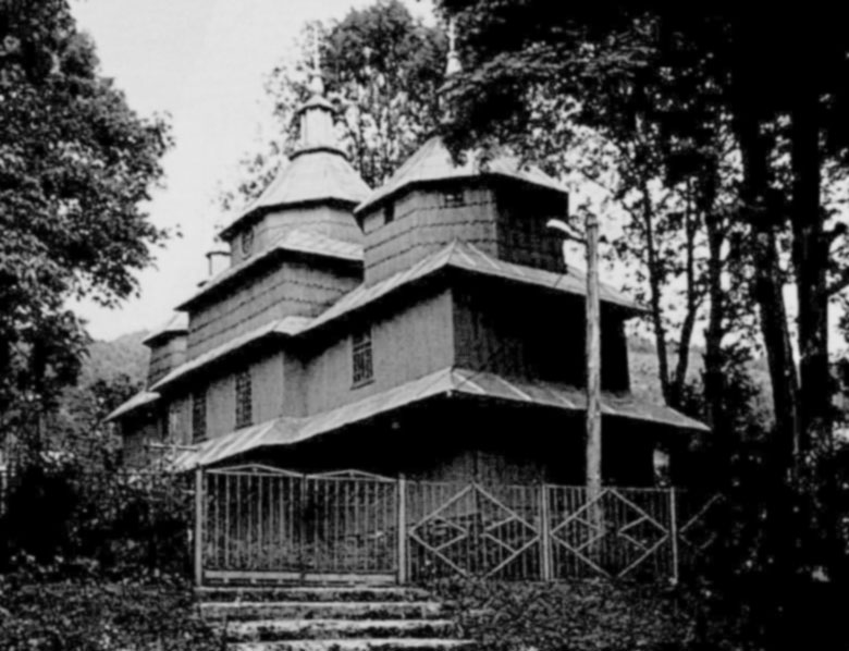 Найдавніші згадки про неї походять з 1565—1566 рр. Попередня дерев’яна церква походила з першої половини XVIII ст. Візитатор 1766 р. описав її як тризрубну триверху. Наву вінчав тризаломний верх, над вівтарем здіймався верх з двома заломами, а над бабинцем — з одним. У 1900 р. на її місці зведено існуючу дерев’яну тризрубну триверху церкву бойківського типу, увінчану над навою восьмибічним наметом на восьмерику і четверику, а над бабинцем і вівтарем — на восьмериках. Під час другої світової війни німецькі війська використовували її на військовий шпиталь. Зачинена з середини 1960-х pp. до 1989 р.