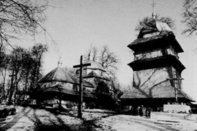Найдавніші згадки про церкву походять з 1578 р. У 1634 р. парафія отримала ерекційну грамоту, підтверджену у 1644 р. королем Польщі Владиславом IV. У 1681 р. коштом громади збудована існуюча дерев’яна тризрубна триверха церква. Первинне її ядро — вівтар і нава; бабинець і ризниця прибудовані пізніше. Вінчають три головні об’єми шоломові бані на низьких восьмериках, завершені ліхтарями з маківками. В церкві зберігся п’ятиярусний різьблений іконостас XVII ст. та різьблені барокові престоли XVIII ст. Церква ремонтована і розширена у 1873 р. Поряд з церквою розташована дерев’яна двоярусна стовпова дзвіниця, сучасна церкві. У 1944 р. німецькі окупанти хотіли спалити церкву з мешканцями села, але пізніше облишили свій задум. Проект реставрацації у 1992 р. виконали архітекти Галя Паночко та Надя Федевич. В цей час громада приступила до будівництва нової дерев’яної церкви, розібравши стару і збудувавши з її матеріалу поряд каплицю.