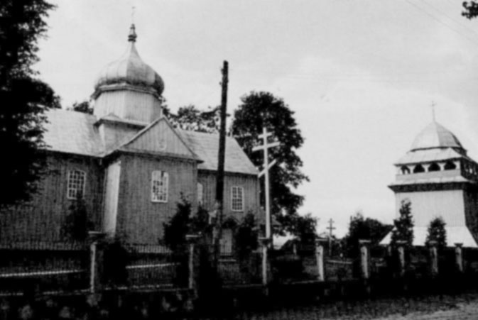 Існуюча дерев’яна церква збудована у 1837 р. на місці давнішої. Це тризрубна одноверха будівля, з восьмигранним верхом над навою, який має один залом. Ремонтована у 1896 р. Ймовірно, тоді ж прибудовані бокові невеликі рамена та встановлений новий іконостас. В середині 1930-х pp. стінопис виконав мистець Олександр Харків. Поряд розташована висока триярусна стовпова дзвіниця з підсябиттям, сучасна церкві. По другій світовій війні не була зачиненою, тепер УАПЦерква. Греко-католицька громада збудувала у 1990 р. невелику каплицю.