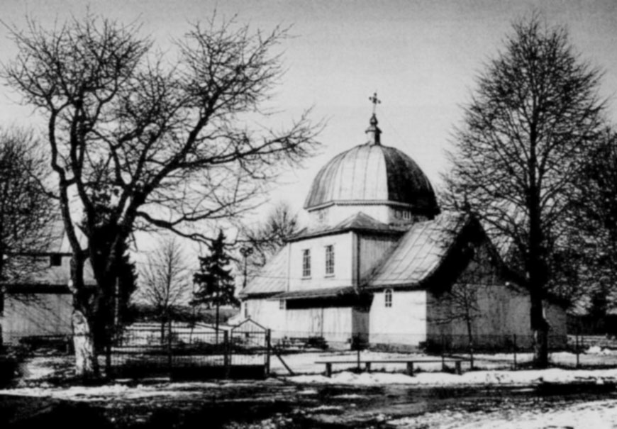 Попередня дерев’яна церква походила з 1712 р (за дослідженнями М. Драґана — з 1728 p.). Постала коштом Адама Держка та Івана Вусика. Це була тризрубна будівля, четвериковий наметовий верх нави якої мав один залом. У 1925 р. проект нової дерев’яної церкви виконав архітект Євген Нагірний, але він не був реалізований. У 1933 р. стару розібрали і замість неї переставили стару церкву з Черниляви, побудовану у 1781 р. Стінопис та перенесений з Черниляви старий іконостас XVIII ст. реставрував у 1933—1934 pp. маляр Олександр Харків. Ця церква теж тризрубна одноверха, увінчана великою банею з ліхтарем і маківкою на низькому восьмерику нави. Зачинена у 1962—1989 pp.