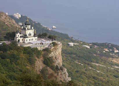Селище (2.0 тис. жителів) Ялтинської міськради, розташоване на узбережжі Чорного моря біля південного краю Кримського півострова і України — мису Сарич. Форос — нині найдорожче курортне селище Південного узбережжя. Тут знаходиться кримська резиденція Президента України, що займає колишню дачу “Зоря”, де під час серпневого путчу 1991 р. під домашнім арештом перебувала родина останнього керівника СРСР М. Горбачова. У Форосі зберігся маєток генерала М. Раєвського — дача “Тесселі” (тиша), на якій з 1932 р. жив М. Горький, а нині вона на піввіку орендована для потреб Республіки Татарстан. З доступних для відвідування визначних пам’яток Фороса відносяться мальовничо вписана в ландшафт, найвідоміша в Криму церква Воскресіння (1892 р., архітектор М. Чагін) [79] і Байдарські Ворота, що виглядають з-за неї (1884 р., архітектор К. Ешліман), встановлені на однойменному перевалі (висота 527 м). Церква побудована на високій скелі над прірвою на замовлення промисловця О. Кузнецова, що вирішив у такий спосіб відзначити щасливий порятунок (як потім з’ясувалося, ненадовго) імператора Олександра III і його родини в залізничній катастрофі під час повернення з Криму. Після Великої Вітчизняної війни в храмі знаходився ресторан, але в другій половині 1980-х років церква стараннями Р. Горбачової була повернута в лоно православ’я.