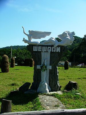 Село (2.0 тис. жителів) Косівського району, розташоване на берегах р. Піс- тинька. Шешори відомі з документальних джерел датованих 1445 р. Тут збе-реглася дерев’яна церква Параскеви із дзвіницею (1874 р.), але основною визначною пам’яткою села вважаються Шешорські водоспади. На карпатських річках багато водоспадів, є більші, з висотою падіння води кілька метрів, і більш ефектні, ніж тут. Місцеві водоспади, які називають Сріблястими, невеликі, але легко доступні і дуже мальовничі, їхній гучний каскад простягнувся річищем на кілька сотень метрів. У незвично широкому для долини гірської річки закруті утворився величезний кам’яний хаос, що практично ховається під водою під час сніготанення і сильних дощів. Це улюблене місце відпочинку туристів, екскурсантів і постояльців місцевих пансіонатів, що фігурує в численних документальних фільмах про Прикарпаття, художніх стрічках і музичних відеокліпах. Шлях Пістиньці тут перетинають потужні крупноблокові піщаники, в яких ріка, місцями їх проточуючи, утворила невеликі бурхливі водоспади. У кількох сотнях метрів униз за течією води річки борються з багатошаровими флішовими породами, створюючи не менш мальовничі картини протистояння води і каменю. Мальовнича природа, чисте повітря і автодорога Коломия-Косів, що проходить неподалік, зробили Шешори дуже популярним місцем як тривалого відпочинку, так і екскурсій. На місцевому стадіоні влітку проводиться фестиваль етнічної музики.