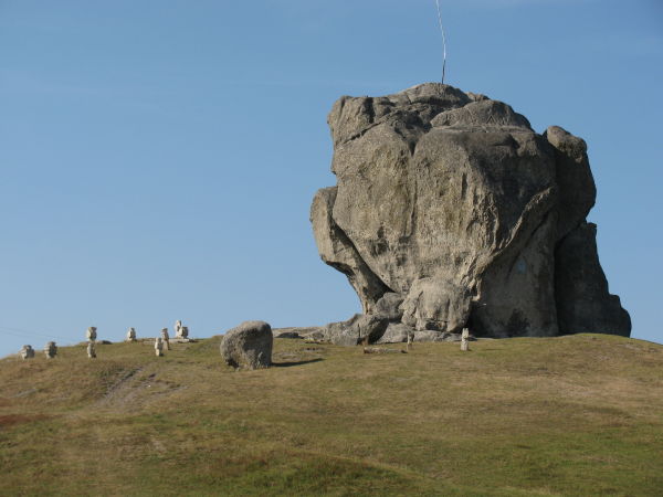 За легендою, утворення скелі Камінь-Велетень не що інше, як витівки нечистої сили, що за давніх часів літала над землею і завдавала людям шкоди, засипаючи ріллю камінням. Один з них, яким вона цілила в місцевий монастир, вирвався з рук і впав неподалік Мабуть цей камінь, оточений хрестами козацьких могил XVII ст., і дав свого часу назву селищу.
