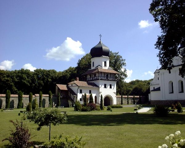 За легендою, саме тут було об’явлення Богородиці, яка передрекла знищення монастиря «червоними бісами» і зникнення джерельної води на час занепаду. На початку XVII століття монастир було перенесено на сучасне місце розташування, під горою Побійною. Монастирський комплекс, що складався з двох храмів та монастирських келій, став важливим релігійним центром, який виконував і захисну функцію під час набігів татарських орд. У 1661-1687 роках було побудовано величні кам’яні мури та башти, відновлені зараз. У 1721-1737 роках було зведено сучасну кам’яну церкву Святого Миколая та келії.