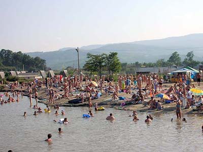 Селище (9.1 тис. жителів) Тячівського району, розташоване на правому березі р. Тиса, за якою починається територія Румунії. Перша документальна згадка про Солотвино відноситься до 1360 р., коли тут почали добувати сіль. Завдяки специфічній геологічній будові цього району, поклади солі, що сконцентровані на глибинах у кілька сотень метрів, за рахунок підняття діапірової структури прорвали річкові наноси Тиси і вийшли на поверхню. Процес повільного вичавлювання солі не припинився і дотепер. Ще недавно (20–30 років тому) виходи солі утворювали в Солотвино ефектні нагромадження, від яких залишилися невеликі згладжені природою сольові останці. Вони розташовані на берегах невеликих озер, концентрація солі в яких не поступається знаменитому Мертвому морю. У середні століття видобування солі велося відкритим способом — у східчастих ямах глибиною до 20 м, а потім у конусоподібних, т.зв. “чортових ямах”, у яких вдавалося заглибитися до 150 м. За першою шахтою побудованою в 1778 р. і названою “Кристіна” були: “Адальберт” (1782 р.), “Миколай” (1789 p.), “Йосип” і “Людовик” (1804 p.), “Франц” (1808 p.). До 1880-х років, коли До Солотвино проклали залізницю, сільсплавляли по Тисі на плотах. У XX ст. сіль добували доволі інтенсивно і на глибинах 300–400 м, де залягає основний продуктивний шар, утворилися величезні порожнечі-зали, що досягаютьу висоту 85 м і зв’язані галереями. При радянській владі одна з виробок була пристосована під палату спелеотерапії Солотвинської республіканської алергологічної лікарні. В останні роки видобуток солі значно скоротився, занедбані надземні шахтні будівлі нагадують про багатовіковий промисел, а заповзятливі люди намагаються пере- профілювати соляні виробки під газосховища. Помітною архітектурною особливістю нинішнього Солотвино є незвично велика кількість різноманітних порівняно недавно побудованих пишних приватних особняків.