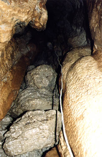 Розташована на дні карстової воронки в центральній частині масиву. Розкрита при провалі покрівлі внутрішньої шахти глибиною 38 м. В її північній стіні по тріщині утворений вузький прохід в суміжну 60-метрову шахту з двома куполами. У тріщинах на південній стіні шахти заклинені брили, слабо скріплені натіканнями. На дні порожнини утворився глибовий навал і скупчення глини.