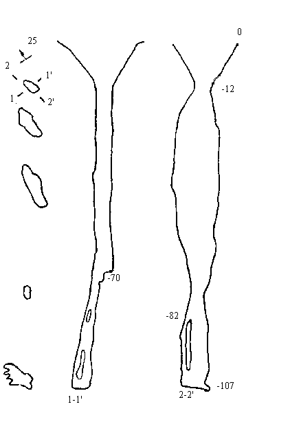 Вхід до печери розташований в центральній частині нижнього плато на схід від метеостанції. Він знаходиться на дні воронки. Шахта складається з одного ствола загальною глибиною 107 м, що має в середній частині невелике розширення, а в нижній - паралельний колодязь.