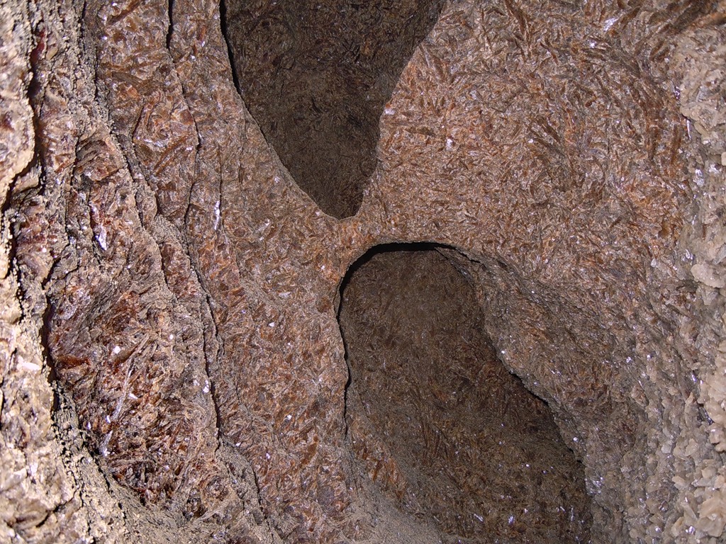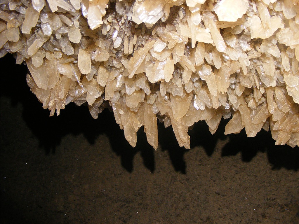 Більшу частину лабіринту печери вкрито чорними гіпсовими кристалами, місцями стіни і стеля ходів від кристалів повністю чорні. Стіни Кришталевого залу до самого верху (а висота його доходить до 6 метрів) вкриті крупними кристалами. Розміри, різноколірність і кількість кристалів вражають своєю красою. Прозорі і біло-жовті, подекуди червоні кристали звисають всюди.