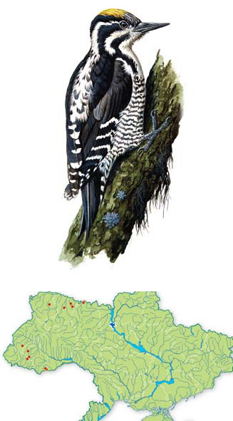 В Україні чисельність складає 300-320 пар. З них 290-300 пар гніздиться в Карпатах і 10-20 пар — на Поліссі. Основна кількість гніздових пар знаходиться у національному природному парку «Синевир» і прилеглих заказниках Горган (70-120 пар), Карпатському біосферному заповіднику (85 пар). Чисельність виду у лісах Карпат скорочується, і на даний час складає 3-4 пари на 100 км2 (Чорногора), раніше (1940-1960 рр.) — 10¬26 пар на 100 км2. Причини зміни чисельності: скорочення площ стиглих лісів, ліквідація ділянок сухостійних дерев і згарищ.