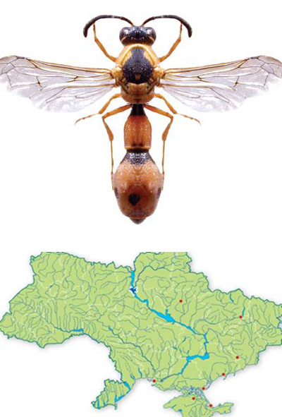 Єдиний вид роду Eumenes в фауні України з основним оранжевим забарвленням тіла. На другому членику черевця три чорних крапки. Довжина тіла — 12-17 мм.