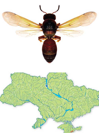 Єдиний вид Vespidae в Україні з основним темно-червоним забарвленням тіла. Середньоспинка та вершинні сегменти черевця чорні. Довжина тіла — 15-18 мм.