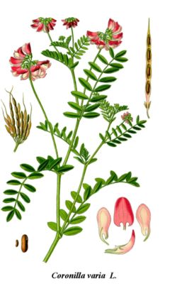 В’ЯЗІЛЬ УВІНЧАНИЙ - регіонально рідкісна трав’яниста рослина. Внесена до “Переліку рідкісних і таких, що перебувають під загрозою зникнення, видів рослинного світу на території Тернопільської обл.” (рішення Терноп. обл. ради від 11. 11. 2002 № 64). Належить до родини Бобові. Зростає на скелястих схилах і вапняках, у світлих листяних лісах, на узліссях. Під охороною в заказнику “Голицький” у Бережанському р-ні.