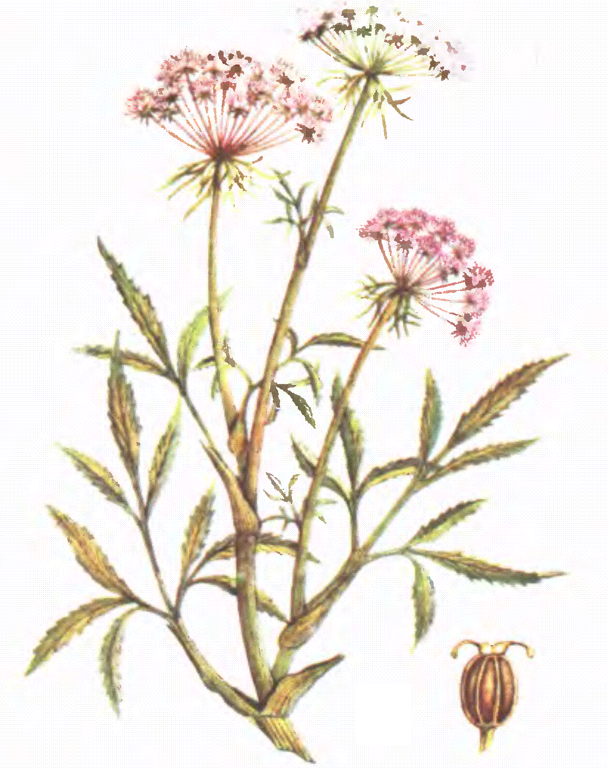Плоди А. в. містять фурокумарини з групи псоралену (ізопімпінелін, бергаптен, ксантотоксин, імператорин, ізоімператорин, мармезин, мармезинін) та з групи ангеліцину (ізобергаптен). У траві А. в. є ті самі сполуки, що й у плодах, але в менших кількостях.
