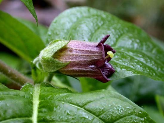 Atropa belladonna — багаторічна трав'яниста рослина родини пасльонових. Має товсте, багатоголове кореневище. Стебло пряме, заввишки 60—200 см, товсте, соковите, вгорі вилоподібно розгалужене, залозисто-пухнате. Листки короткочерешкові, яйцевидні або яйцевидно-еліптичні, загострені, цілокраї, в нижній частині стебла чергові, на квітконосних пагонах — зближені попарно, один з них більший. Квітки Одиничні, великі, пониклі, коричнево-фіолетові або червоно-бурі, розміщені в пазухах листків. Плід — куляста чорна ягода. Цвіте у червні — серпні.