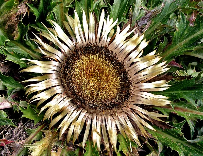 Сагііпа - багаторічна трав'яниста рослина родини айстрових (складноцвітих). Стебла поодинокі, здебільшого вкорочені й непомітні. Листки зібрані в прикореневій розетці, жорсткі, по краях вкриті колючками, перисторозсічені або перистороздільні. Квітки жовтуваті, у великих (7-12 см у діаметрі) кошиках. Плід - сім'янка. Цвіте у серпні - вересні.