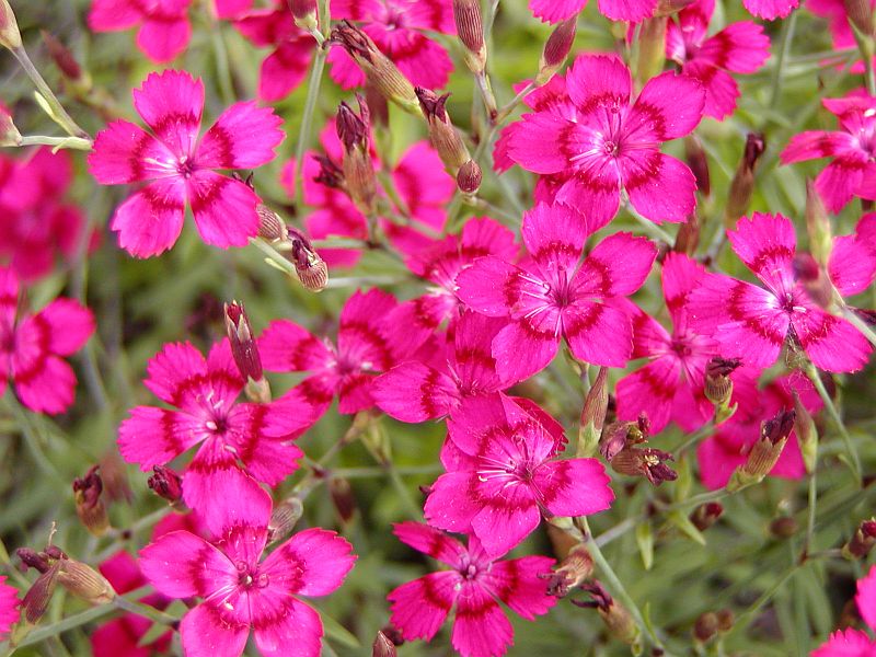 Багаторічна сизувата або зелена трав'яниста рослина родини гвоздикових. Має тонке повзуче кореневище, яке утворює дернинки з квітконосних і неплідних пагонів. Стебло висхідне, з коротким шорстким опушенням, 10—40 см заввишки. Листки супротивні, по краях і середній жилці шорстко волосисті, тупі; нижні — довгасто лопатковидні, верхні — лінійні. Квітки правильні, двостатеві, одиничні, рідше — по дві - три, 5-пелюсткові. Пелюстки зубчасті, червоні, з кільцем пурпурових плям. Плід — коробочка. Цвіте у червні — вересні.