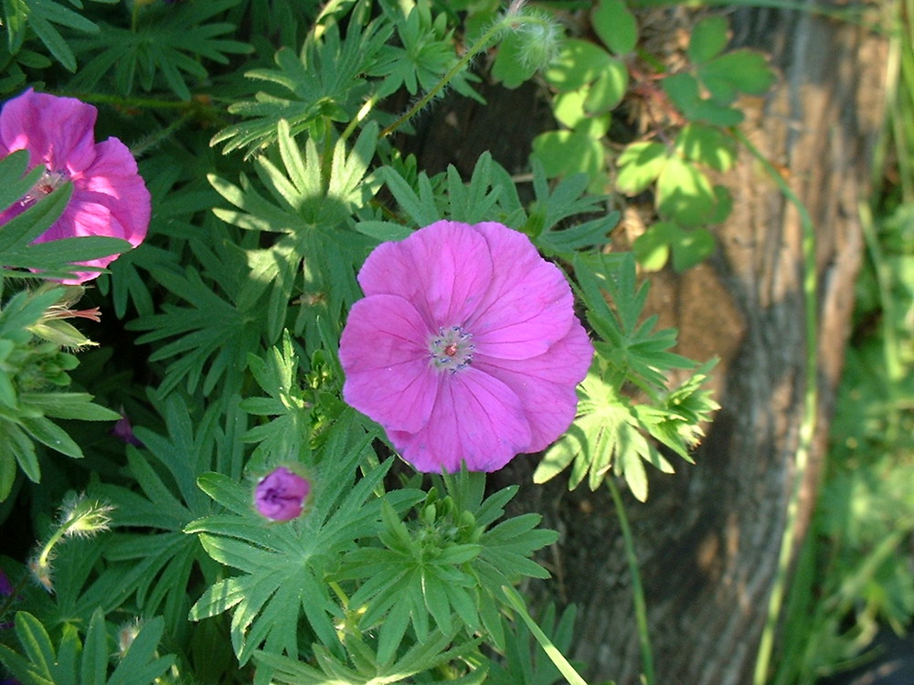 Багаторічна трав'яниста відстовбурчено волосиста рослина родини геранієвих. Має товсте здерев'яніле кореневище. Стебло від основи розгалужене, рідше — просте, лежаче або висхідне, 25—50 см заввишки. Листки нирковидні або округлі, з широко надрізаними сегментами на 3 і більше лінійних часток. Квітки правильні, двостатеві, 5-пелюсткові, криваво-червоні, одиничні, на довгих квітконіжках. Плід сухий, розпадається на 5 однонасінних часток.