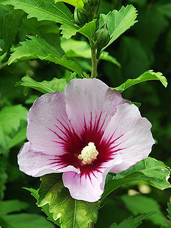 Hibiscus esculentus — однорічна трав'яниста рослина родини мальвових. Стебло розгалужене, 1,5—2 м заввишки. Листки довгочерешкові, серцевидні, 3—7-лопатеві з широкоовальними зубчастими частками. Квітки двостатеві, правильні, великі, одиничні в пазухах листків; віночок жовтий, при основі — з темною плямою. Плід — коробочка, з 5— 11 гранями. Цвіте у липні — серпні.