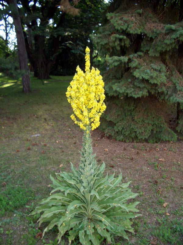 Дворічна або однорічна повстисто опушена рослина родини раникових. Стебло просте або у верхній частині розгалужене, прямостояче, 50—180 см заввишки. Листки видовжено еліптичні, городчасті, загострені; стеблові збігають на меживузля стебла, утворюючи на ньому крила; верхні листки зменшені. Квітки двостатеві, неправильні, жовті, зібрані в густе переривчасте колосовидне суцвіття. Плід — коробочка. Цвіте у червні — серпні.