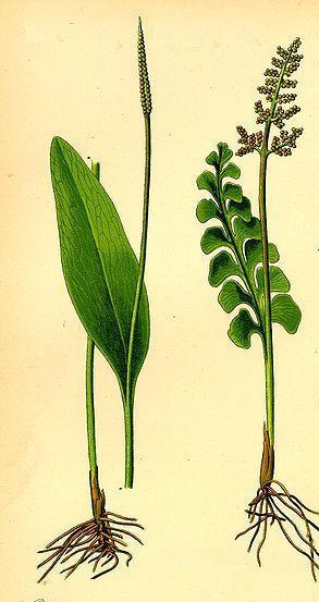 (Ophioglossum vulgare) — мало схожа на інші папороті реліктова рослина заввишки 5-10 см. Надземна частина рослини представлена одним листком, який, у свою чергу, складається з двох частин. Перша — овальна цілісна пластинка, схожа на листки інших рослин, а друга — стрілка із спорангіями, що має вигляд колоса. Латинська назва вужачки — офіоглосум (походить від слів "офіс" — змія та "глосса" — язик). Дійсно, колосок вгорі на стрілці нагадує язичок вужа. Колись вважали, що цю папороть оберігає цар-вуж, який робить людину щасливою. Цю рослину використовували знахарі. Зростає вужачка переважно на вологих луках, серед чагарників, на узліссях.