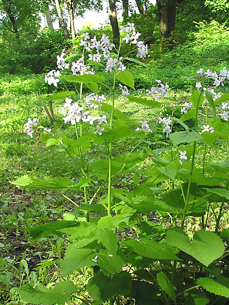 Лунарія оживаюча — рослина з родини хрестоцвітих. Квіти невеликі, з чотирма пе-люстками й приємним запахом. Пелюстки бувають білого, світло-лілового, а найчастіше фіолетового кольору. Лунарія привертає погляд протягом всього вегетаційного періоду. Досить високе стебло (до 1 м) несе великі серцевидні зубчасті листки. Квітує ця рослина у травні-червні. А в кінці літа, коли розтріскуються її плодики — великі широкі стручечки, вона знову є досить помітною завдяки білим перетинкам плодів, які довго залишаються на рослині.