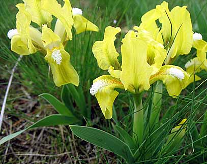 (Iris pineticola) — ендемічна північнопричорноморська рослина, яка в Україні поширена на Лівобережжі у південній частині Лісостепу та в Степу, а також у Правобережному Лісостепу від Дніпра до Південного Бугу. Це невеличка, 7-20 см заввишки, багаторічна рослина з плескатими мечовидними листочками. Квітує у квітні-травні. Квіток переважно дві, жовтого кольору. Під впливом людської діяльності ця рослина стає все рідкіснішою.