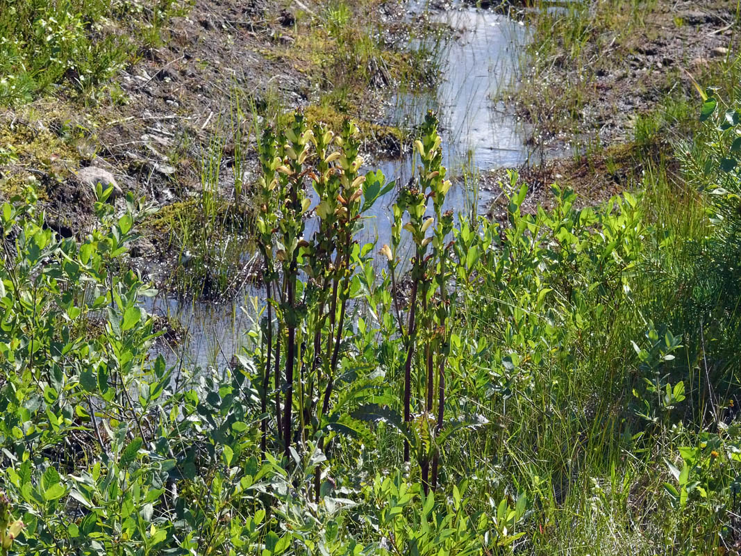 Варто розповісти про нього. Пелюстки великих (до 3-х сантиметрів) квіток зрослися і формують верхню та дещо довшу нижню губу. Віночок має темно-жовте забарвлення, а його кінчик (власне нижня губа) червоний. Квіти зібрані у велике колосовидне суцвіття і виглядають надзвичайно ефектно. Після цвітіння утворюються кулясті плоди-коробочки з численним насінням. Шо-лудивник — рослина, яка веде напівпа- разитичний спосіб життя, оскільки частину мінеральних елементів поглинає з коренів інших рослин. На території України шолудивник королівський вважається льодовиковим реліктом. У післяльодовиковий період він зберігся в окремих локалітетах — відокремлених місцезнаходженнях. Рослина чутлива до осушення, тому протягом останніх десятиліть кількість її місцезростань ще більше скоротилася.