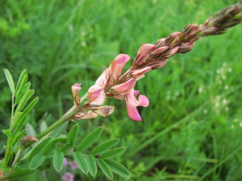 Багаторічна трав'яниста рослина родини бобових. Стебла численні, прямостоячі, 30—70 см заввишки. Листки складноперисті, нижні — з 6—12 пар еліптичних або довгасто-лінійних листочків. Квітки двостатеві, неправильні, в довгих китицях. Віночок яскраво-фіолетовий, з темними смужками, 8 —10 мм завдовжки. Плід— біб, сітчасто-зморшкуватий. Цвіте у червні—липні.