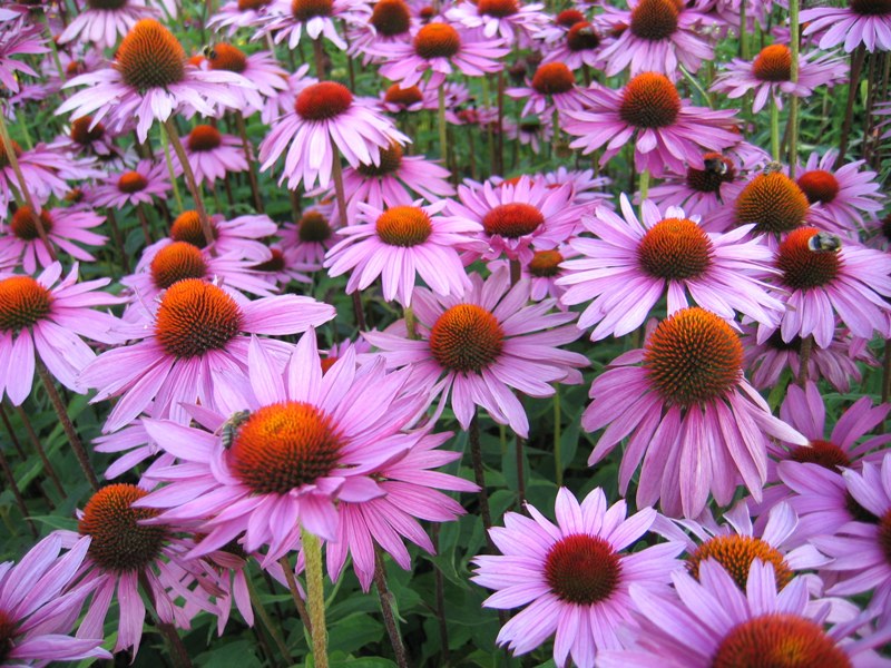 Echinacea purpurea — багаторічна трав'яниста рослина родини айстрових (складноцвітих). Стебло пряме, 50—150 см заввишки. Листки прості, овально- або лінійно-ланцетні, по краю зарубчасто-зубчасті; нижні — довгочерешкові, верхні — майже сидячі. Квітки дрібні, у великих, розміщених поодиноко на кінцях стебел та гілок кошиках; крайові — довгоязичкові, неплідні, пурпурові, темно-червоні або жовті; серединні — трубчасті, двостатеві. Плід — сімянка. Цвіте у серпні — жовтні.