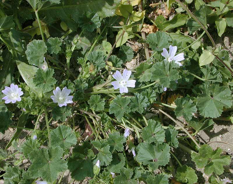 Одно-, дво- або багаторічна сірувата рослина родини мальвових. Стебла лежачі або висхідні, циліндричні, від основи дуже розгалужені, 10—45 см заввишки. Листки чергові, довгочерешкові, округлі до майже нирковидних, по краю дрібнозубчасті, при основі — виїмчасті, 5—7-лопатеві, з яйцевидно-ланцетними прилистками. Квітки правильні, двостатеві, блідо-рожеві, на циліндричних квітконіжках, по 3—4 або цілими пучками в пазухах листків; пелюстки яйцевидні, в 2—3 рази довші за чашечку. Плід розпадається на 14 (12— 16) плодиків-сім'янок. Цвіте у червні — вересні.