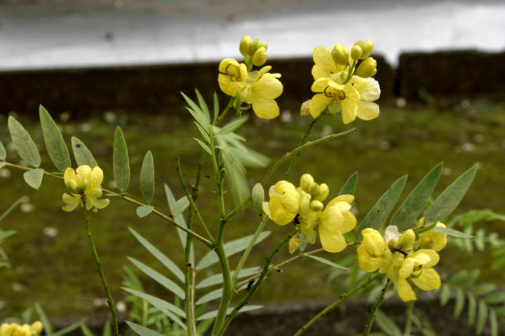 Cassia angustiiolia, синонім — Senna otticinalis — невеликий (1,5—1,8 м заввишки) прямостоячий кущ родини цезальпінієвих. Нижні гілки підведені над землею. Листки чергові, парноперисті, з 4—5 парами синювато-зелених листочків завдовжки 2,5—6 і завширшки 1—2 см. Квітки великі, зигоморфні, золотаво-жовті, зібрані в пазушні китицевидні суцвіття. Плід — біб, темно-коричневий, з зеленим відтінком. Цвіте з липня до осені. Насіння визріває з вересня.