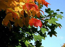 Acer platanoides — дерево з густою розлогою кроною родини кленових. Стовбур колоновидний з тріщинуватою темно-сірою корою, 25—30 м заввишки. Листки супротивні, 5—7-лопатеві, з обох боків зелені, основа серцевидна, лопаті тонкозагострені, з 1 — З зубцями, виїмки між ними заокруглені. При зриванні листків з черешків виділяється молочний сік. Квітки дрібні, правильні, в прямостоячих щитковидних суцвіттях. Віночок зеленаво-жовтий. Плід — подвійна крилатка. Цвіте у квітні — травні.