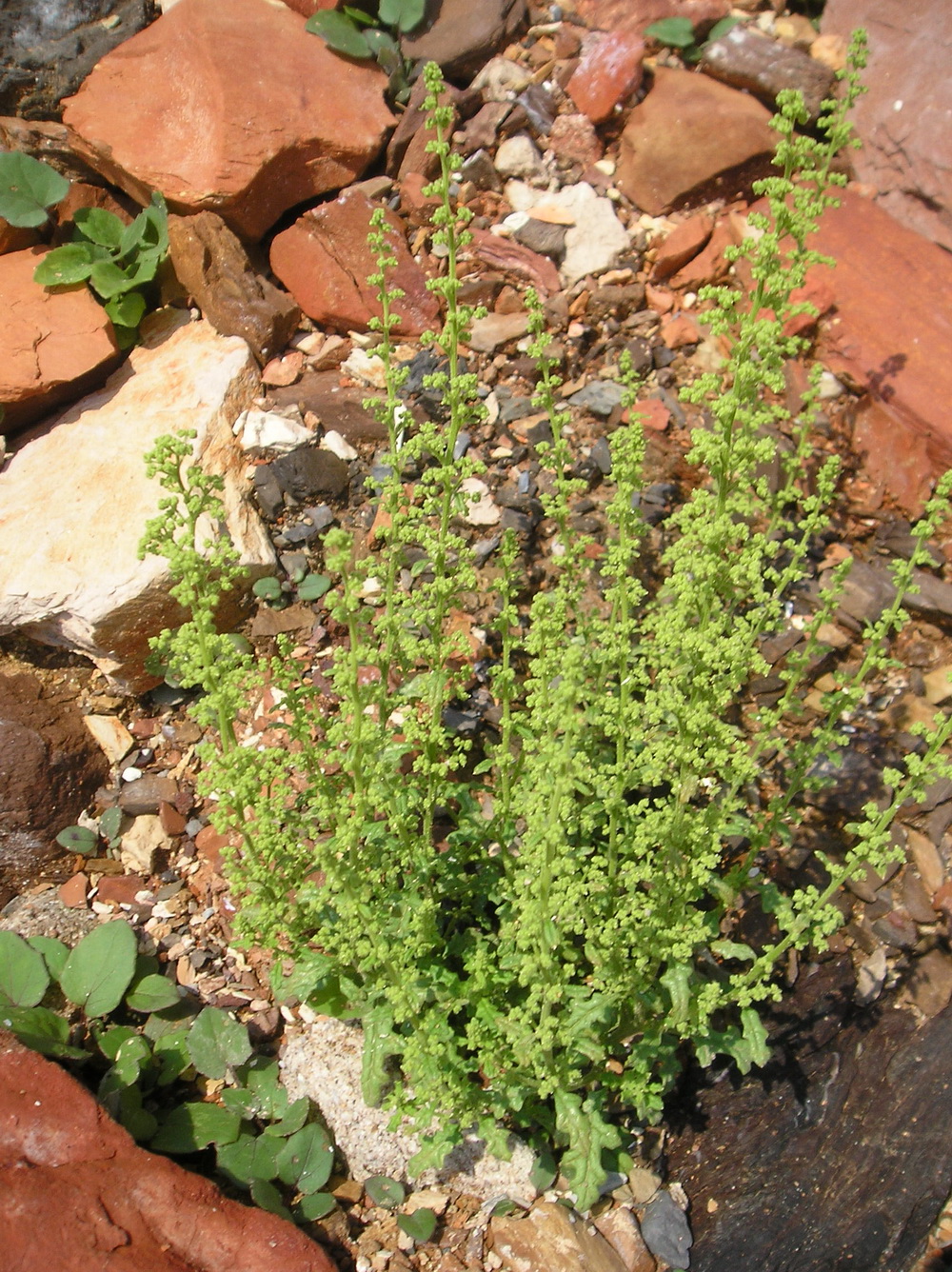 Багаторічна трав'яниста з розсіяною борошнистою поволокою рослина родини лободових. Стебел кілька, вони прості або з короткими небагатьма гілочками, 15—60 см заввишки. Нижні та серединні листки великі, трикутно-списовидні, довгочерешкові, цілокраї, злегка хвилясті, гострі або загострені. Квітки двостатеві, п'ятичленні, бокові — три-чотиричленні, зібрані в густе колосовидно-волотисте суцвіття, яке тільки внизу вкрите листям; листочки оцвітини вузькоплівчасті, вгорі зрізані, нерівномірно зазублені, на спинці без кіля. Плід — однонасінний горішок з тонким плівчастим оплоднем; насінина вертикальна, висунута з оцвітини. Цвіте у липні — серпні.