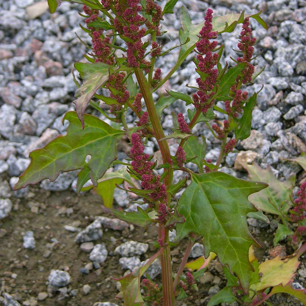 Chenopodium rubrum, синонім — Blitum rubrum — однорічна трав'яниста гола рано червоніюча рослина родини лободових. Стебло пряме, гіллясте, з поздовжніми смугами, борозенчасте, 10—100 см заввишки; нижні гілки видовжені, висхідні. Листки черешкові, з обох боків зелені, різноманітні за формою: яйцевидно-дельтовидні, ромбовидно-яйцевидні, видовжено-яйцевидні, при основі часто стріловидні, загострені, рідше — тупуваті, виїмчасто-лопатеві, верхні — вужчі і видовжено-загострені. Квітки дрібні, двостатеві, зібрані клубочками у кінцеві та пазушні колосовидні суцвіття, які утворюють пірамідальну волоть: квітки бокових суцвіть тричленні, рідко — двочленні, верхівкових — чотири-п'ятичленні; листочки оцвітини жовто-зелені, голі, горбочкуваті. Плід — однонасінний горішок з тонким плівчастим оплоднем; насінини круглі, з носиком (з верхівкових квіток — горизонтальні, з решти — вертикальні). Цвіте у липні — вересні.