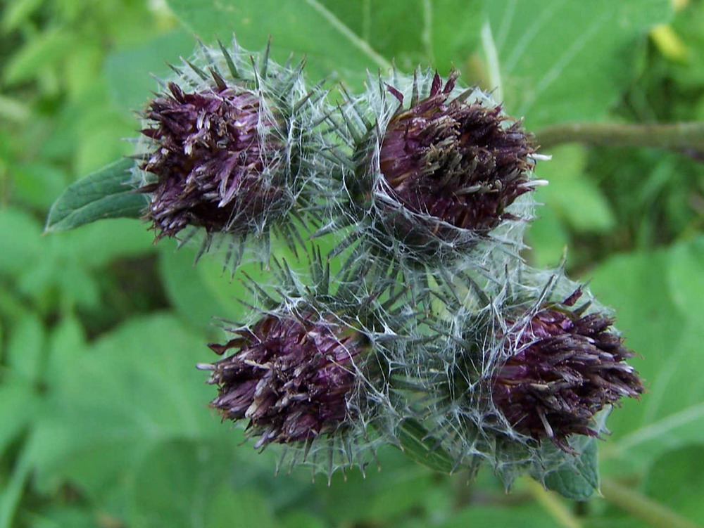 Arctium nemorosum, синонім — Lappa nemorosa — дворічна трав'яниста рослина родини айстрових (складноцвітих). Стебло прямостояче, 10—250 см заввишки, павутинисто опушене, з довгими, дуговидно донизу відігнутими гілками. Листки яйцевидно-серцевидні, короткозагострені, зісподу сіруватопавутинисті. Квітки двостатеві, трубчасті, пурпурові, в майже кулястих кошиках, що утворюють китице-видне суцвіття: кошики — на дуже коротких залозистих ніжках. Плід —сім'янка. Цвіте у червні — серпні.
