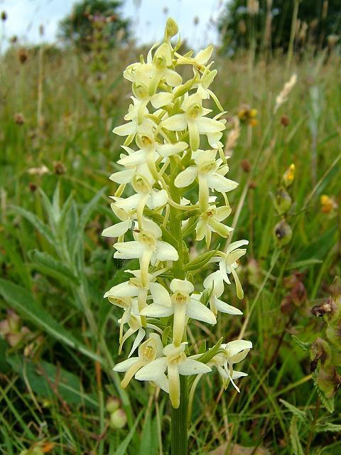 Багаторічна трав'яниста рослина з довгастими цілісними бульбами родини зозулинцевих (орхідних). Стебло прямостояче, голе, ребристе, біля основи — з бурими піхвами, 20—50 см заввишки. Прикореневі листки великі, майже супротивні, еліптичні, голі, звужені в крилатий черешок; стеблові — чергові, дрібні, ланцетні. Квітки неправильні, двостатеві, великі, білі, запашні, у рідких верхівкових китицях; оцвітина віночковидна, з 6 листочків: 3 листочки сходяться шоломом, 2 бічні неоднакові між собою і1 утворює лінійну цілісну губу з тонким зігнутим на кінці зеленуватим шоломом. Плід— коробочка. Цвіте у червні—липні.
