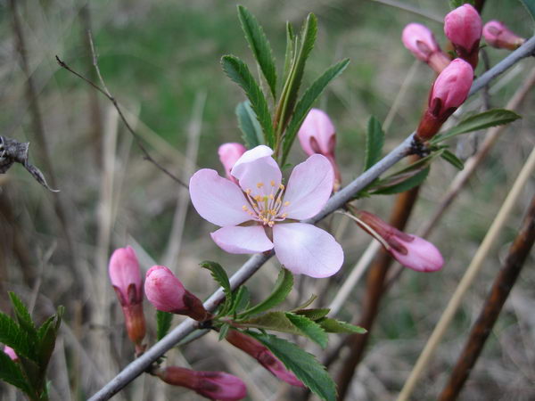 Amygdalus — невеликий (30—100 см заввишки) кущ родини розових. Кора на однорічних пагонах білувата, на багаторічних — червонаво-сіра. Ластки чергові, ланцетні, гостро-пилчасті, на верхівці загострені, на вкорочених пагонах, які часто перетворюються на колючки, сидять пучками, на ростових — частіше одиничні; пелюстки яскраво-рожеві, у деяких культурних форм — білі. Плід — яйцевидно-округла, трохи сплюснута, вкрита повстю кістянка; кісточка косо-яйцевидно-округла, майже гладенька. Цвіте у березні — травні, одночасно з появою листя.