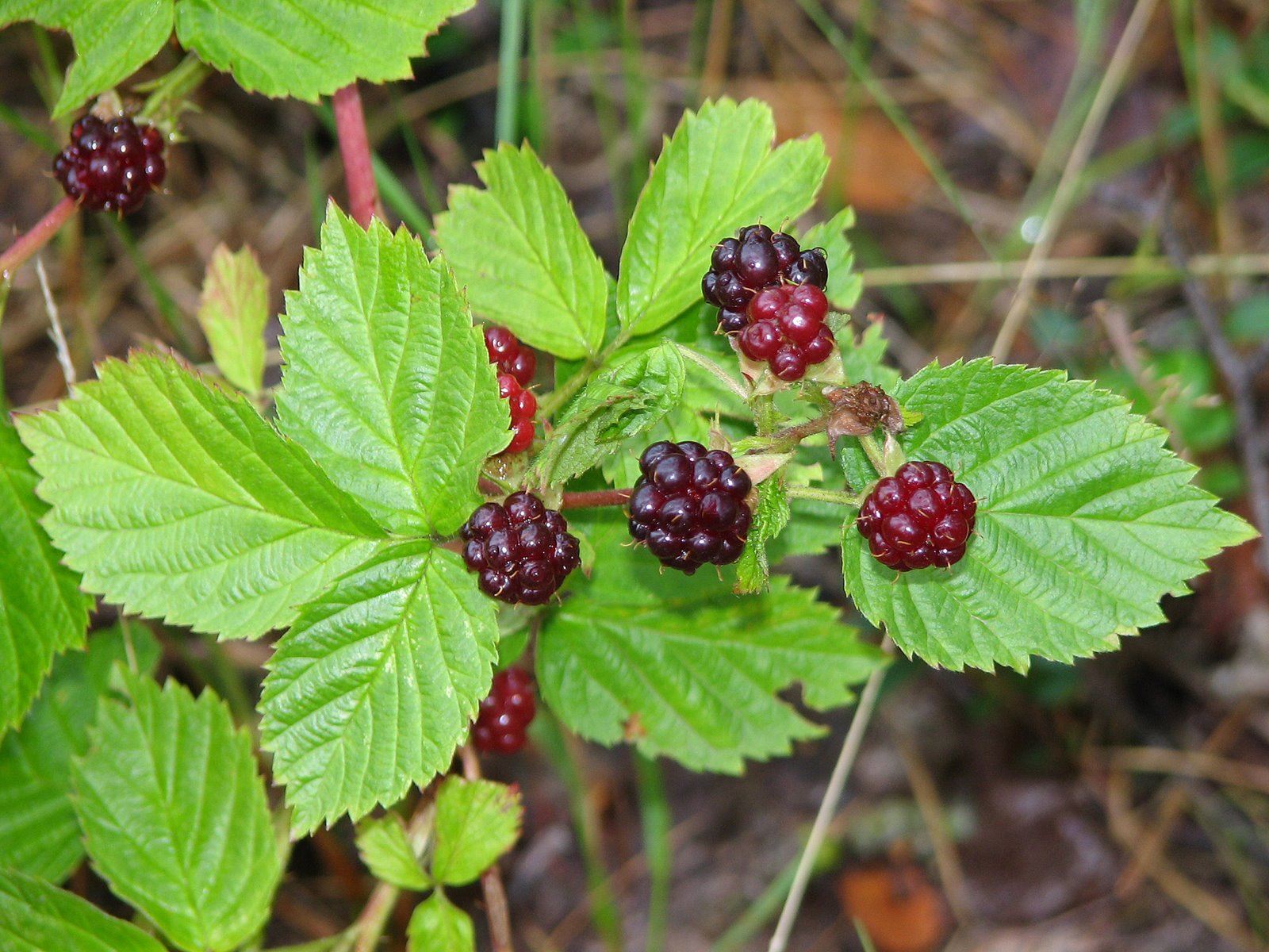 Кущ родини розових. Річні пагони майже прямостоячі, 0,5—2,5 м заввишки, гранчасті, з коротенькими прямими чорно-пурпуровими шипами на ребрах. Листки пальчасті, зубчасті, з 3—5 (7) листочками, зверху голі, зісподу по жилках коротковолосисті. Квітка великі, правильні, двостатеві, білі, у 6— 12-квітковому щитковидному суцвітті. Плід — збірна кістянка (плодики червонаво-чорні, блискучі, без сизого нальоту). Цвіте у червні — липні.