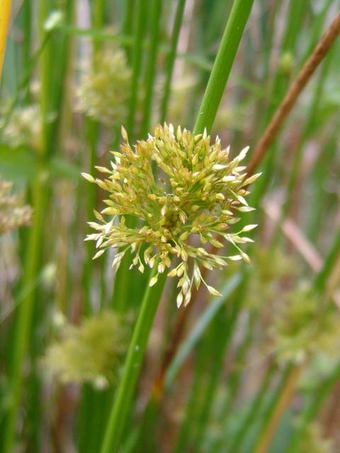 Багаторічна трав'яниста рослина родини ситникових. Має густодернисте повзуче кореневище. Стебла циліндричні, міцні, гладенькі (в сухому стані тонко-борозенчасті), зелені, 50-120 см заввишки, при основі обгорнуті ясно-бурими безлистими піхвами, всередині суцільно виповнені (без перетинок), після маленької перемички витягнуті (без особливо помітного розширення) в довгий (15-25 см) гострий трубчастий приквітковий листок. Квітки правильні, одиничні, на видовжених квітконосах, зібрані в розлогу волоть; оцвітина віночковидна, з шести лінійно-ланцетних, гострих, зеленуватих, злегка іржасто-обведених, по краях вузькоперетинчастих листочків, розміщених двома колами. Плід – обернено-яйцевидна, бурувата коробочка. Цвіте у червні-липні.