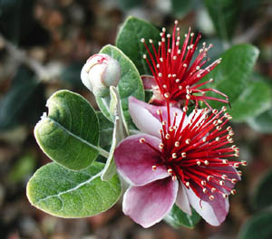 Feijoa sellowiana — кущ або невелике (2—5 м заввишки) дерево родини миртових. Листки вічнозелені, товстуваті, шкірясті, супротивні, еліптичні, цілокраї, зверху темно-зелені, зісподу — білуваті від повстистого опушення. Квітки правильні, двостатеві, великі (до 4 см у діаметрі), по 1—5 у пазухах листків; пелюстки (їх 4) білі, всередині — темно-рожеві, яйцевидні, м'ясисті. Плід — жовтувата, часто з червонуватим боком і шорсткуватою поверхнею ягода. Цвіте у червні — липні. Плоди дозрівають з жовтня до зими.