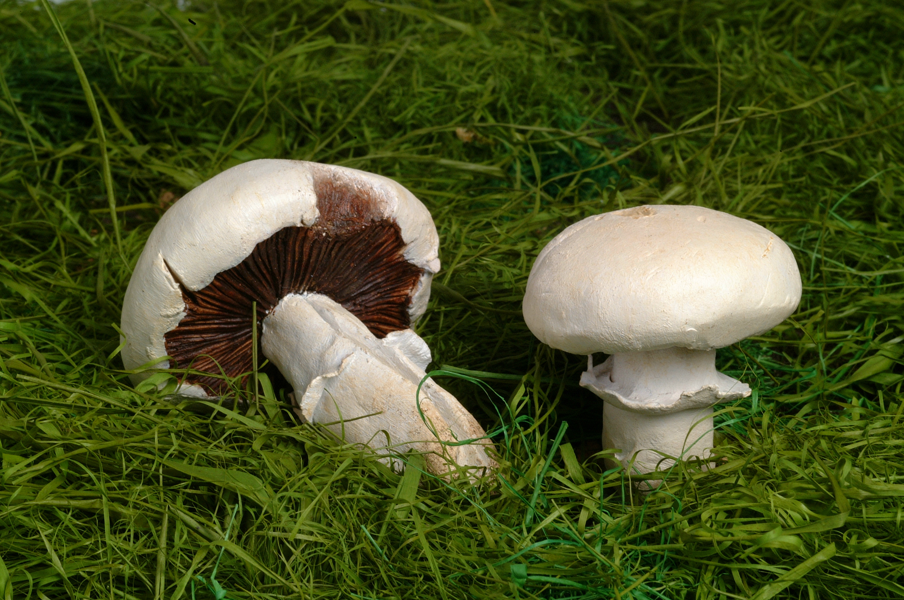 Agaricus campestris, синонім — Psalliota campestris — гриб родини агарикових. Шапинка 4—8 см у діаметрі, у молодих грибів куляста, пізніше плоскорозпростерта, шовковисто-біла, у дозрілих грибів — з коричнюватим відтінком, гола або з малопомітними притиснутими лусочками; пластинки вільні, спочатку рожеві, потім довго зберігають м'ясочервоний колір, у старих грибів — шоколадно-коричневі й навіть чорні. Спорова маса пурпурово-коричнева. Ніжка щільна, кольору шапинки, З—7 см заввишки і 1 —1,5 см завтовшки, з тонким білим нестійким кільцем у верхній частині. М'якуш білий, з приємним запахом свіжоспиляного дерева, при розрізуванні рожевіє, особливо у верхній частині ніжки.
