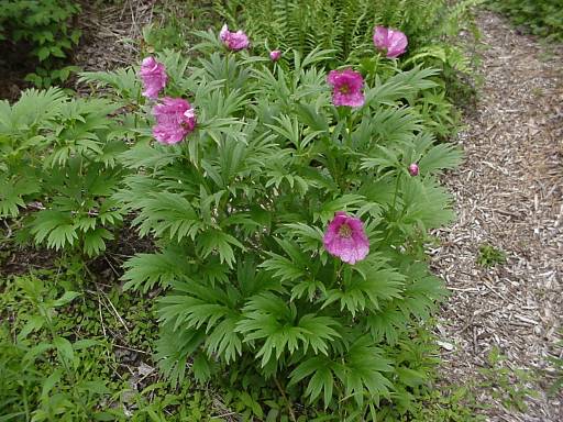 Багаторічна трав'яниста рослина родини півонієвих. Має багатоголове кореневище, від якого відходять веретеновидні м'ясисті сидячі (без звужень при основі) корені. Стебла прямостоячі, ребристі, прості, 60— 100 см заввишки. Листки голі, чергові, черешкові, двічі або тричі перисторозсічені на вузькі (до 2,5 см завширшки), ланцетні частки. Квітки правильні, двостатеві, великі (8— 13 см у діаметрі), 5—6-пелюсткові, одиничні на верхівці стебла; пелюстки інтенсивно червоні, інколи блідо-рожеві, на верхівці вищерблені. Плід складається з (2) 3—5 багатонасінних голих листянок. Цвіте у травні — червні.